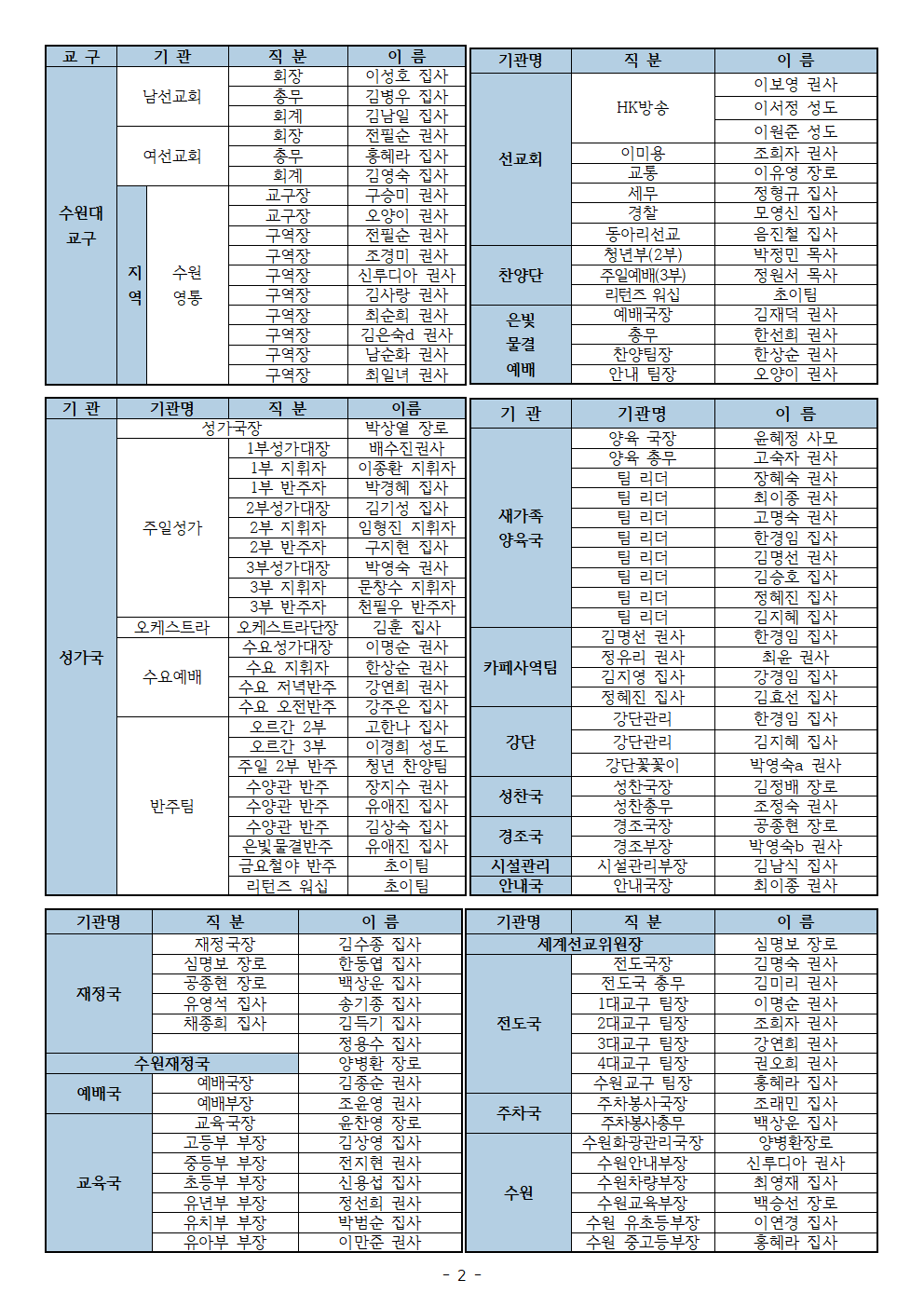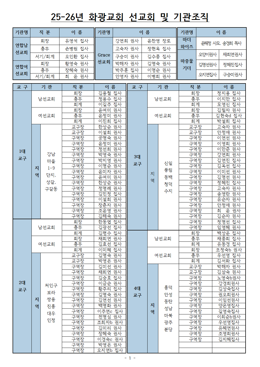 2025-26년도 화광교회 선교회&기관 조직도